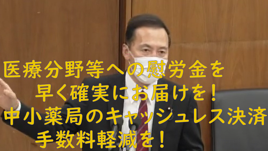 (厚労1120)医療分野等への慰労金を早く確実にお届けを!中小薬局のキャッシュレス決済手数料軽減を!