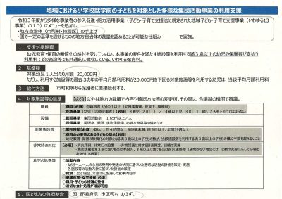 令和三年度より、「地域における小学校就学前の子供を対象とした多様な集団活動事業の利用支援」というものを行っているところ