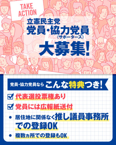 立憲民主党・党員またはサポーターのご登録をお願いします!