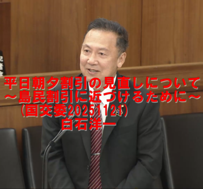 白石:「法定調査と言わないにしても、今のネットワーク調査でいいので、それで、四国新幹線、もうそれだけ言うとまたハレーションが起きます。ですから、東九州とか山陰とか、あるいは東北の日本海側、残っている基本計画で整備新幹線になっていないものについて、ルートとかあるいは費用とか、そのメリット、デメリットを詳細に調査していただきたい」